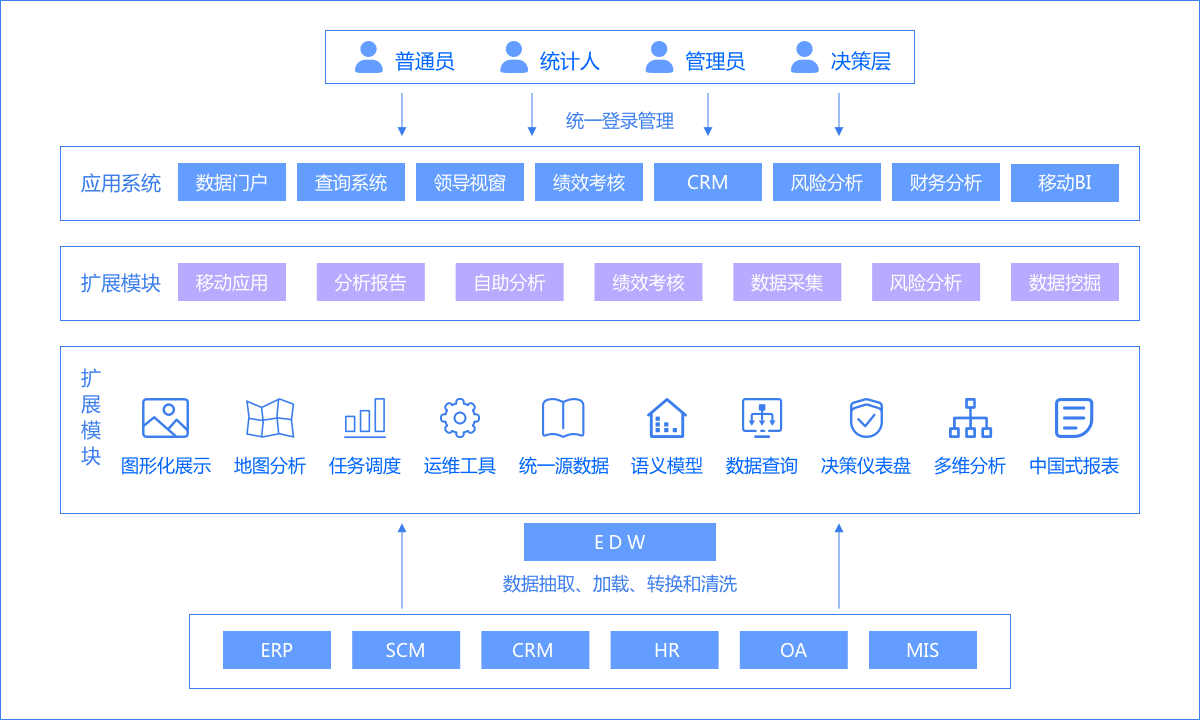 米兰注册大数据解决方案打造了易使用、高性能、低成本、高可靠的解决方案,帮助客户进行大数据运营,挖掘出蕴含在数据当中的价值。底层计算引擎提供海量数据存储和高速计算能力;中层大数据工作台为数据资产的开发、管理、挖掘、服务化提供工具;上层应用通过各种形式发挥数据的价值。
